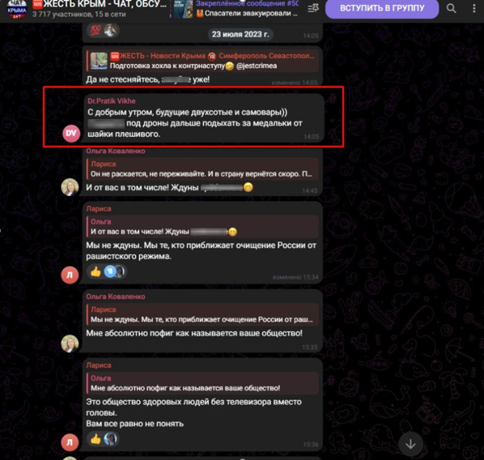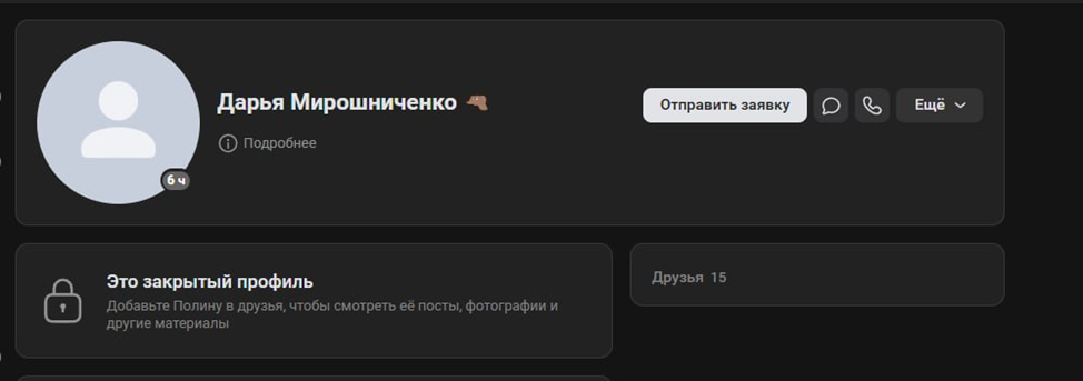 Что ж, начнём с того, что в прошлом Дарья очень любила крайне провокационные высказывания в публичной форме. Писала различные посты на тему своих мыслей о внешней политике России, позднее крайне неуважительно высказывалась об СВО и наших бравых бойцах. С приходом закона о дискредитации армии она это достаточно быстро перевела под маску анонимности, продолжив писать те же вещи, но уже с различных фейковых аккаунтов. Установить взаимосвязь этих учётных записей было достаточно непросто, но силами оперативных источников информации она была подтверждена.